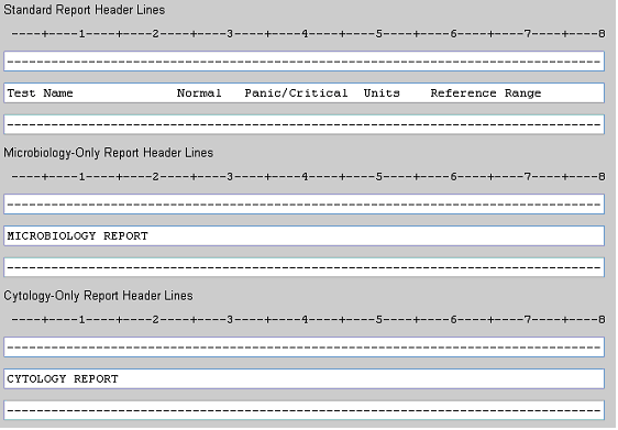 Microbiology or Cytology headers are used when the samples contain only Micro type or Cytology type tests in the sample.